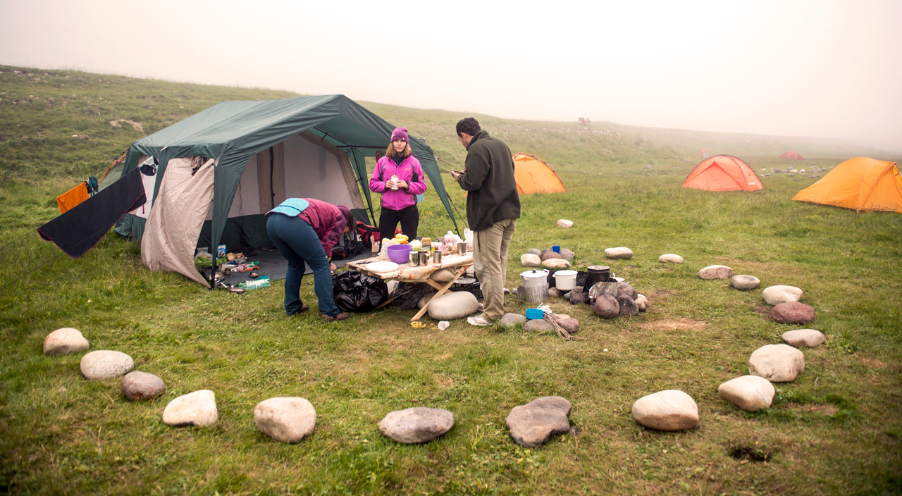 Палаточный лагерь у подножья величественного Эльбруса (Северная сторона), ежедневные практики йоги и трекинги налегке, водопады, неделя без интернета, высокогорная баня